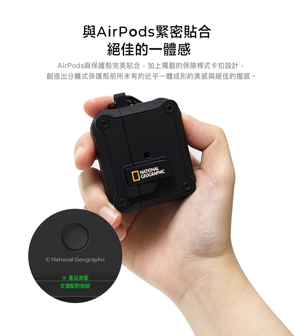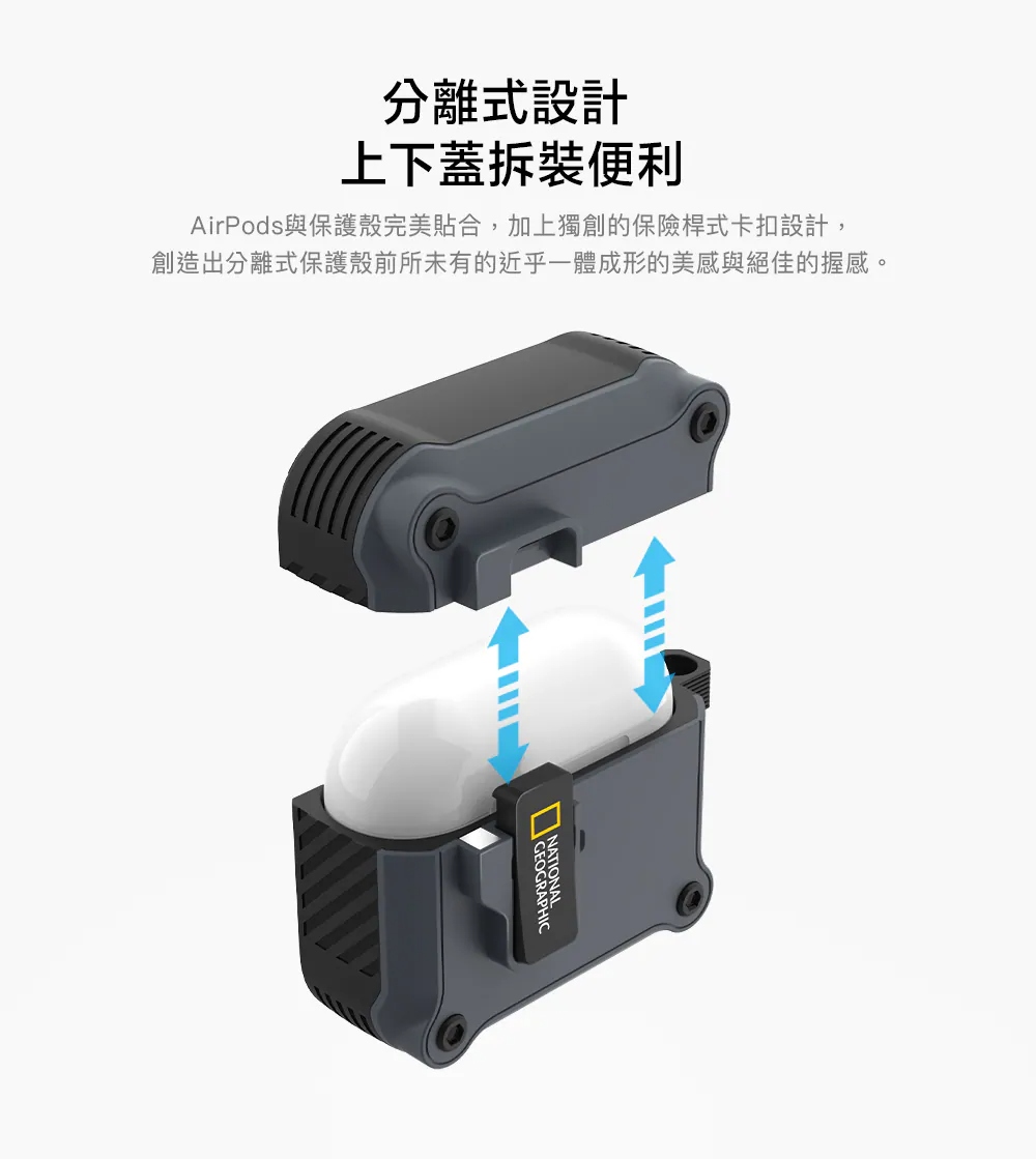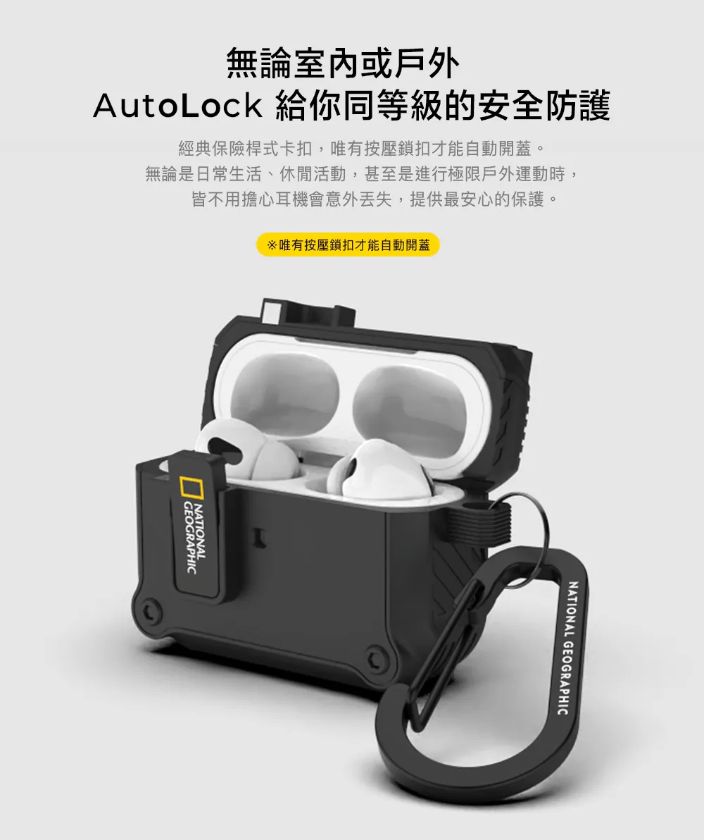 • 獨創保險桿式卡扣安心升級,唯有按壓鎖扣下方才能開蓋,不必擔心耳機丟失