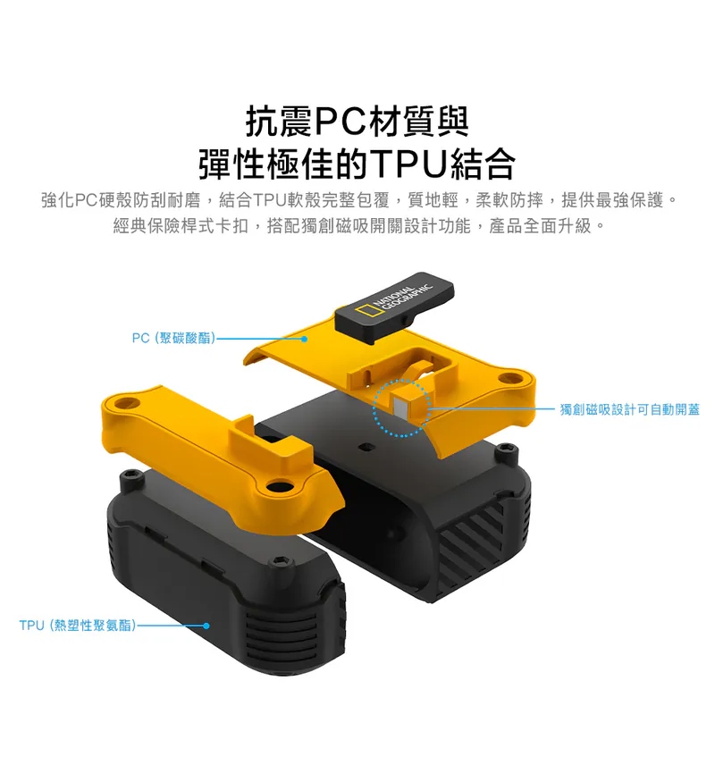 • 抗震PC材質與彈性極佳的TPU結合,強化PC硬殼防刮耐磨,結合TPU軟殼完整包覆,質地輕且柔軟防摔,提供最強保護