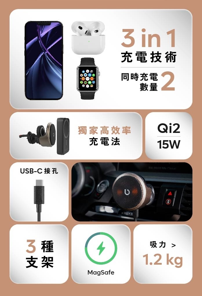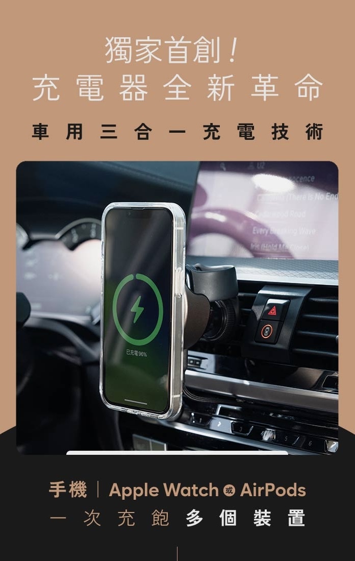 ● 首創三合一充電技術,手機、Apple Watch、AirPods 多裝置