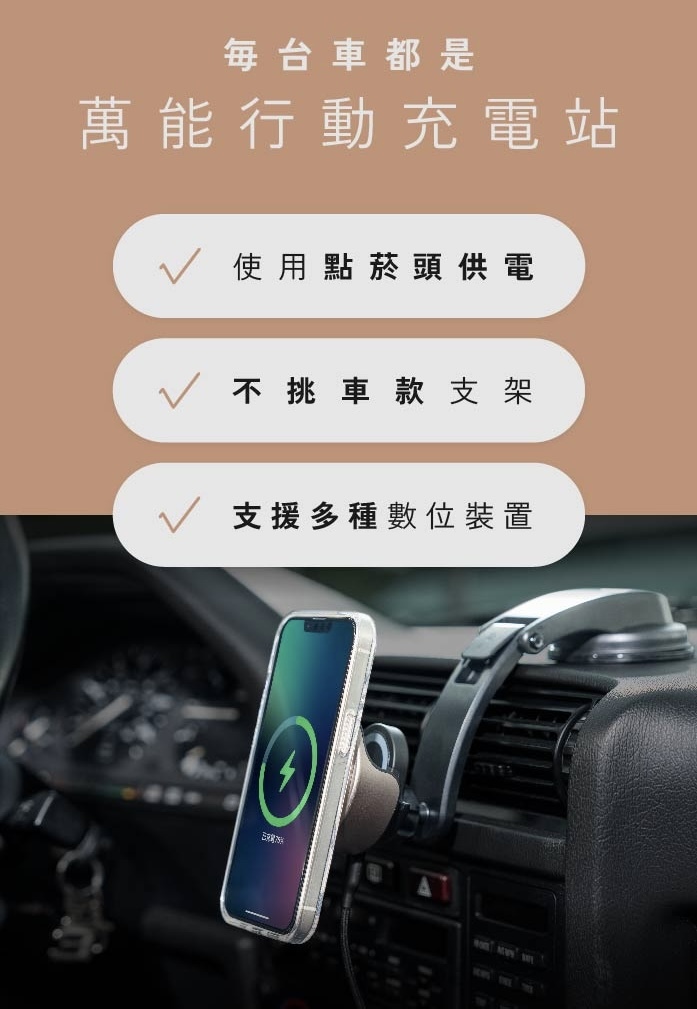 ● 包裝內容物:Omnia X MagSafe 無線充電器、智慧型轉軸式勾夾支架、USB-C 充電線、使用說明書