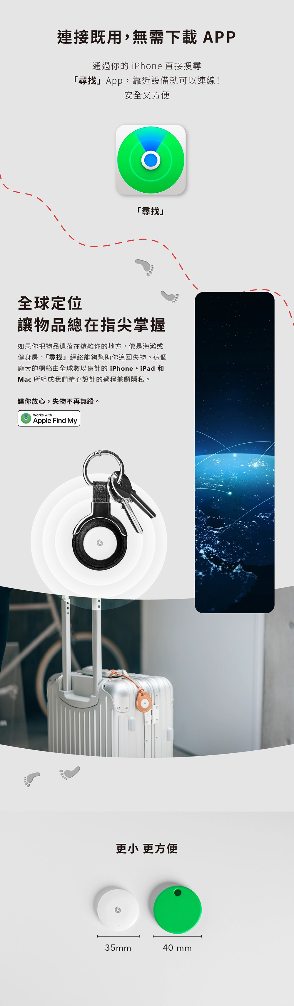 蘋果系統結合:直接使用 iPhone「尋找」既可連接。