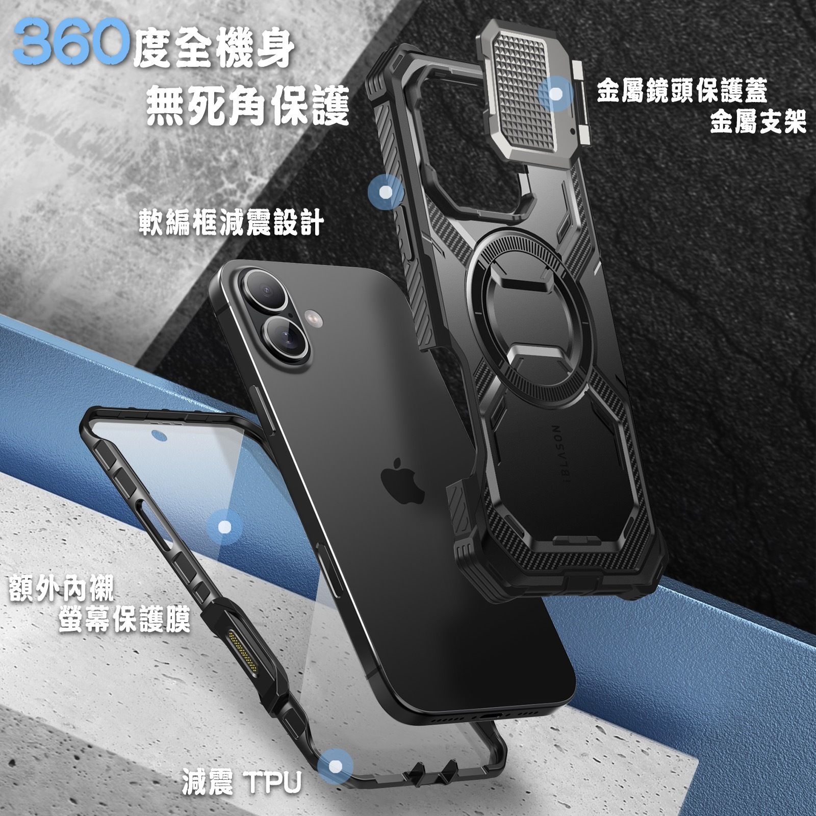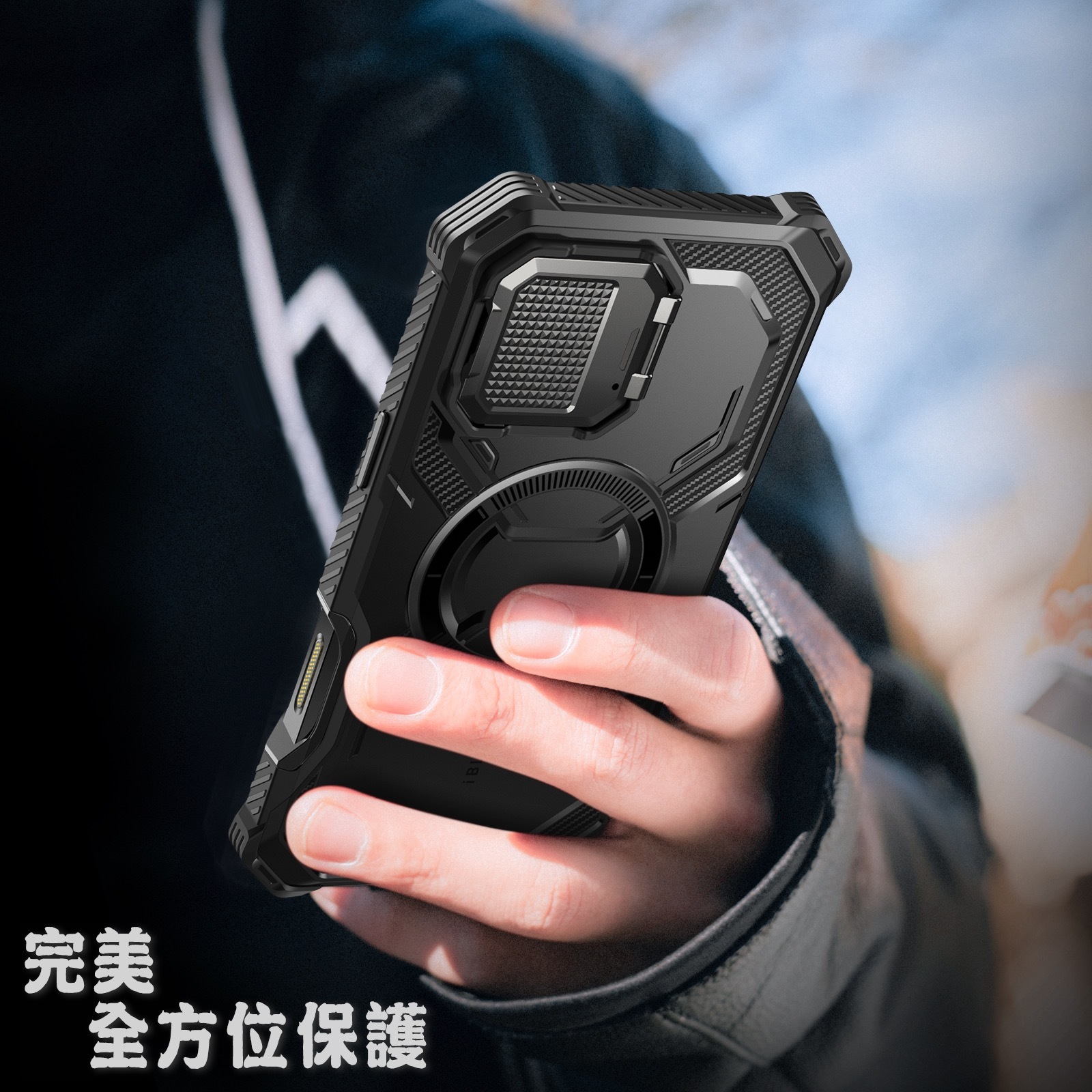 |軍規殼+立架+MagSafe 磁吸+鏡頭蓋+實體按鍵