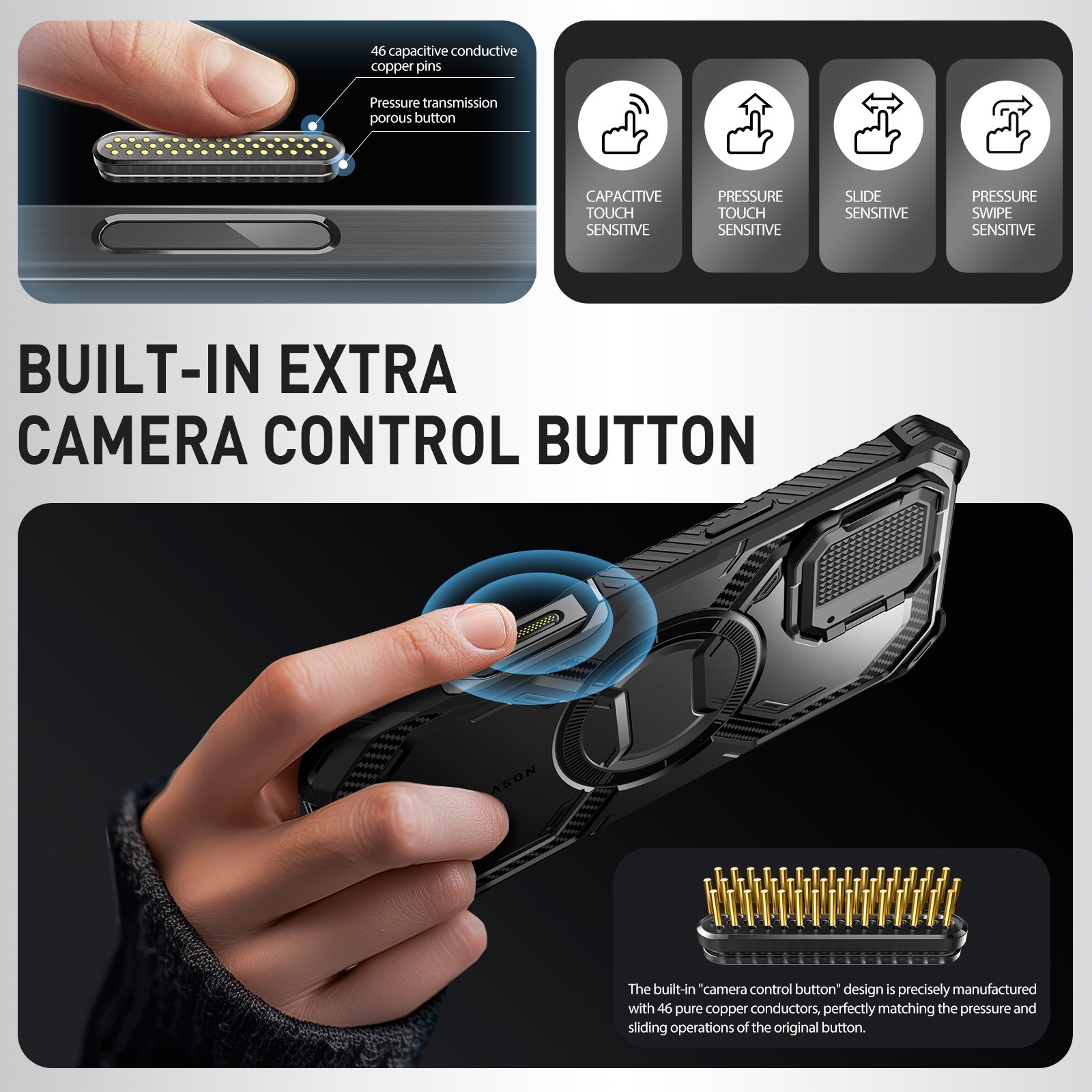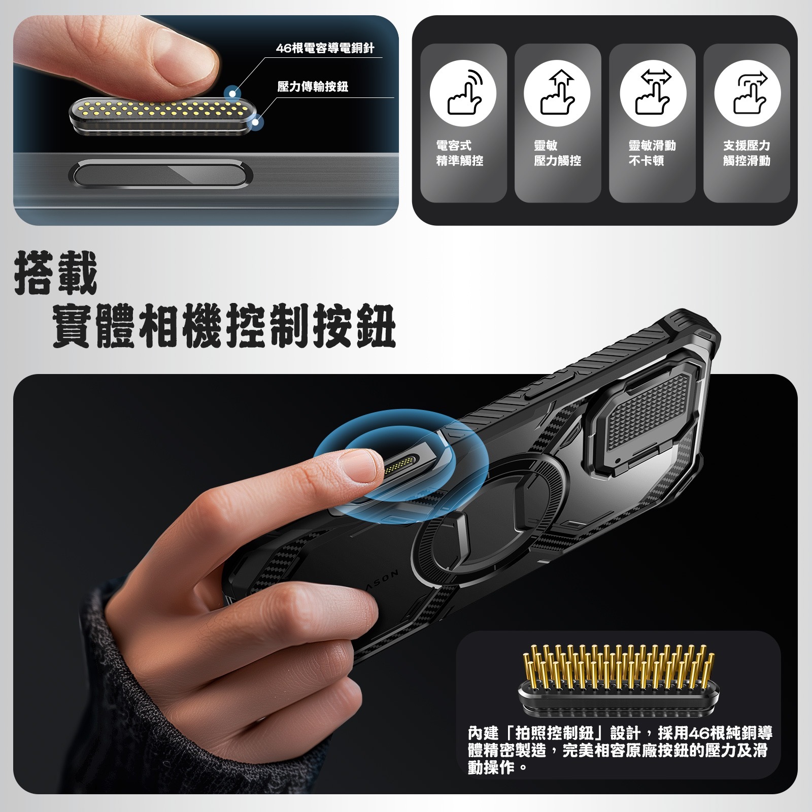 |外觀時尚並富有科技感,開孔精準,易裝易取,握持感受舒適
