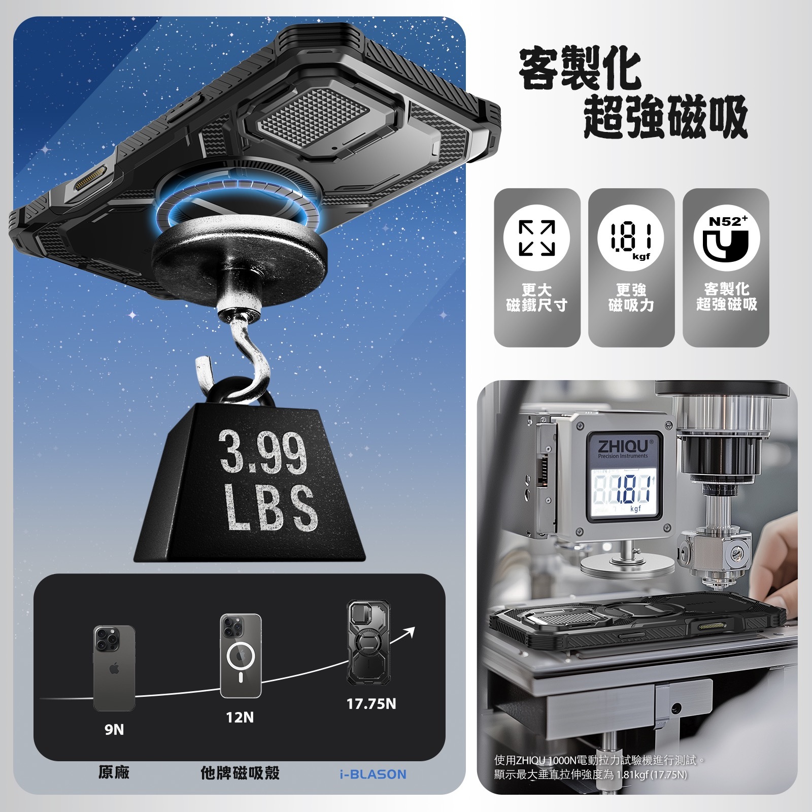 熱塑性聚氨酯彈性體(TPU)+聚碳酸酯 (PC)+鋅合金攝像頭支架+ N52磁鐵