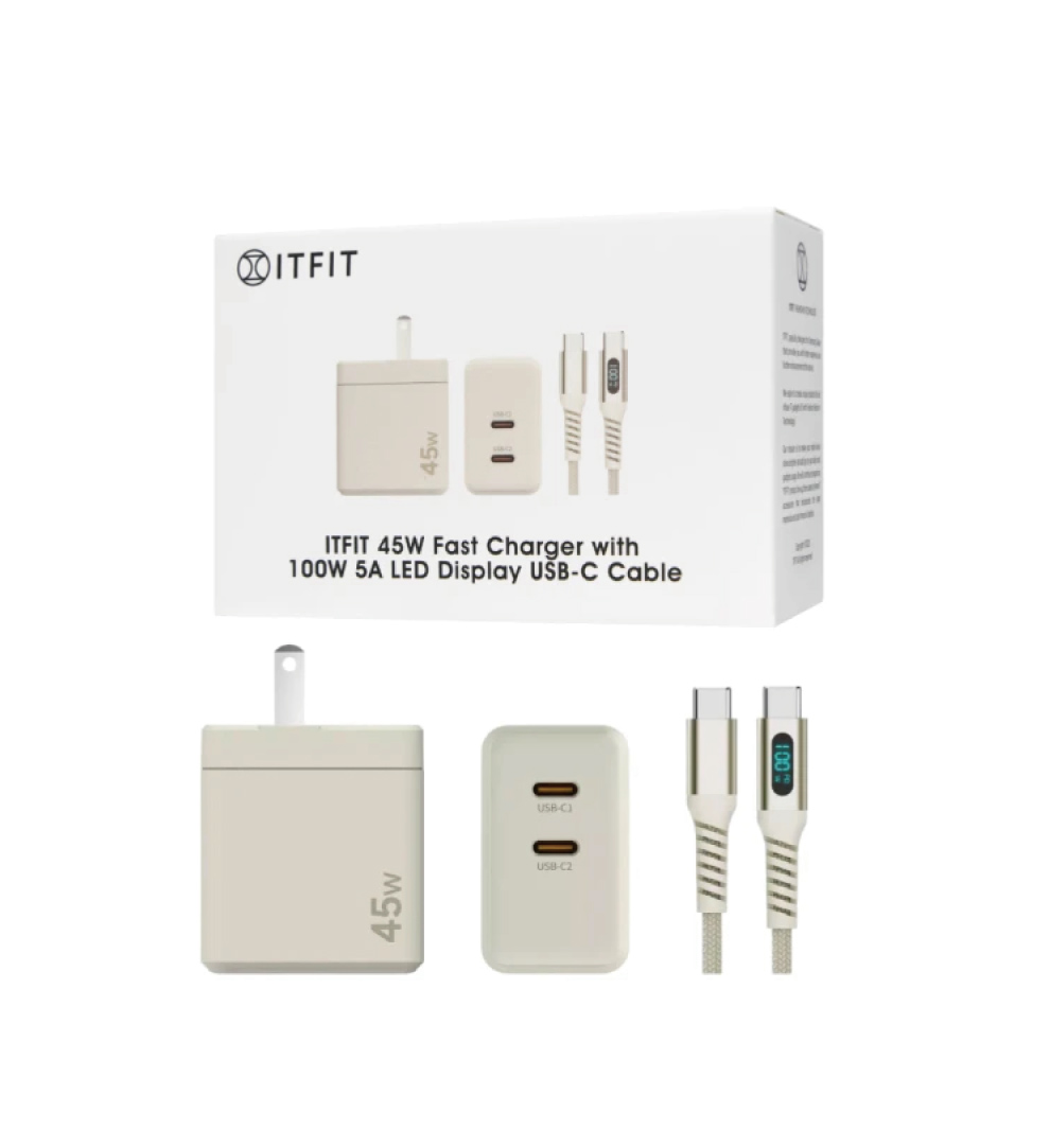 品名:ITFIT 45W GaN雙孔+100W 5A 雙Type-C 快充組