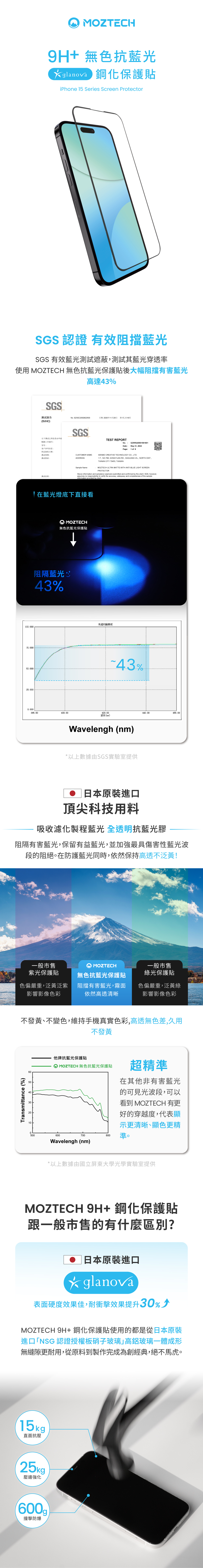 •實驗室認證,415nm-455nm的藍光有效阻隔達50%