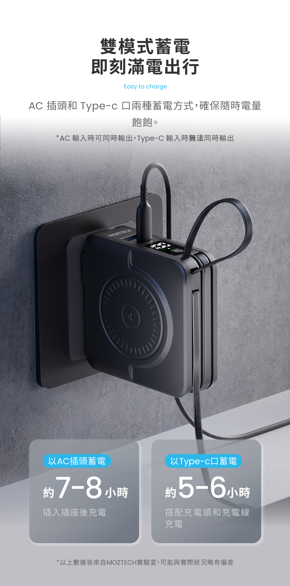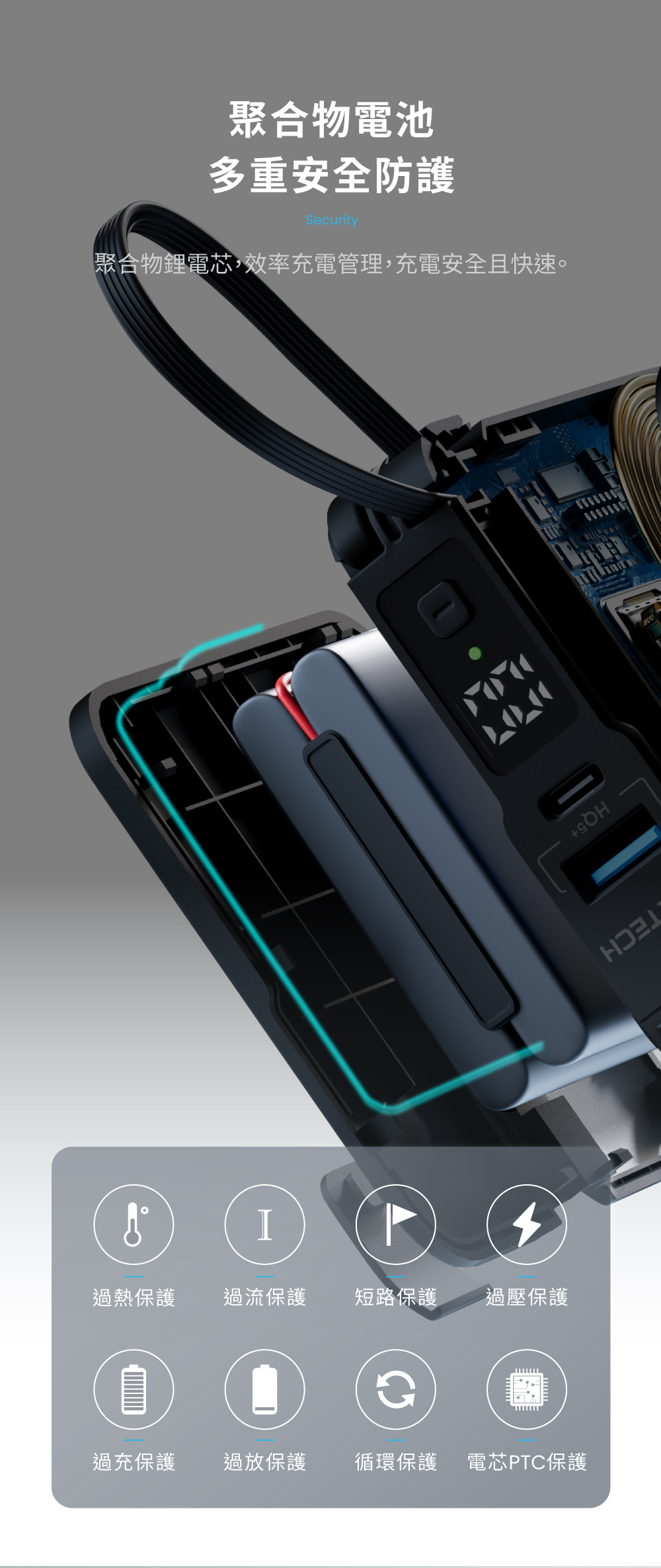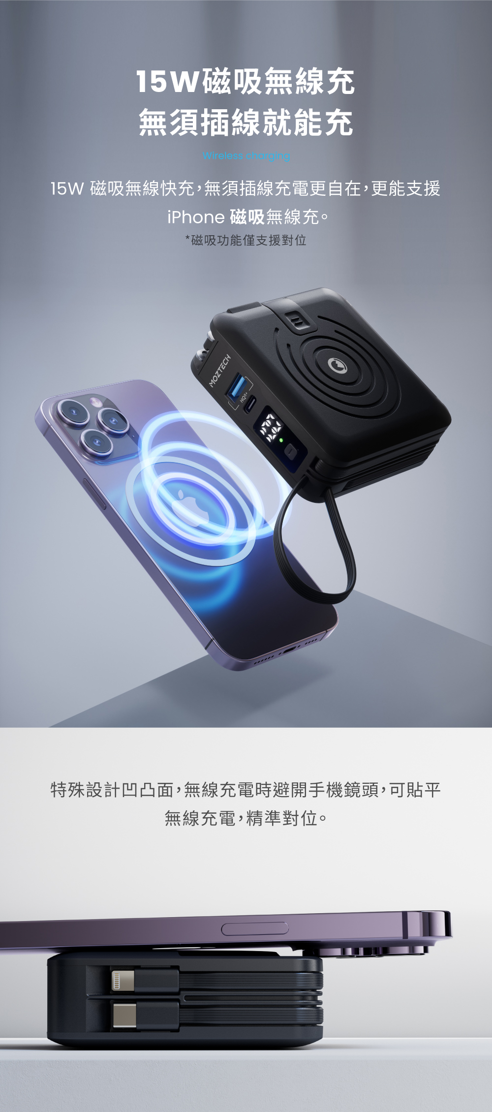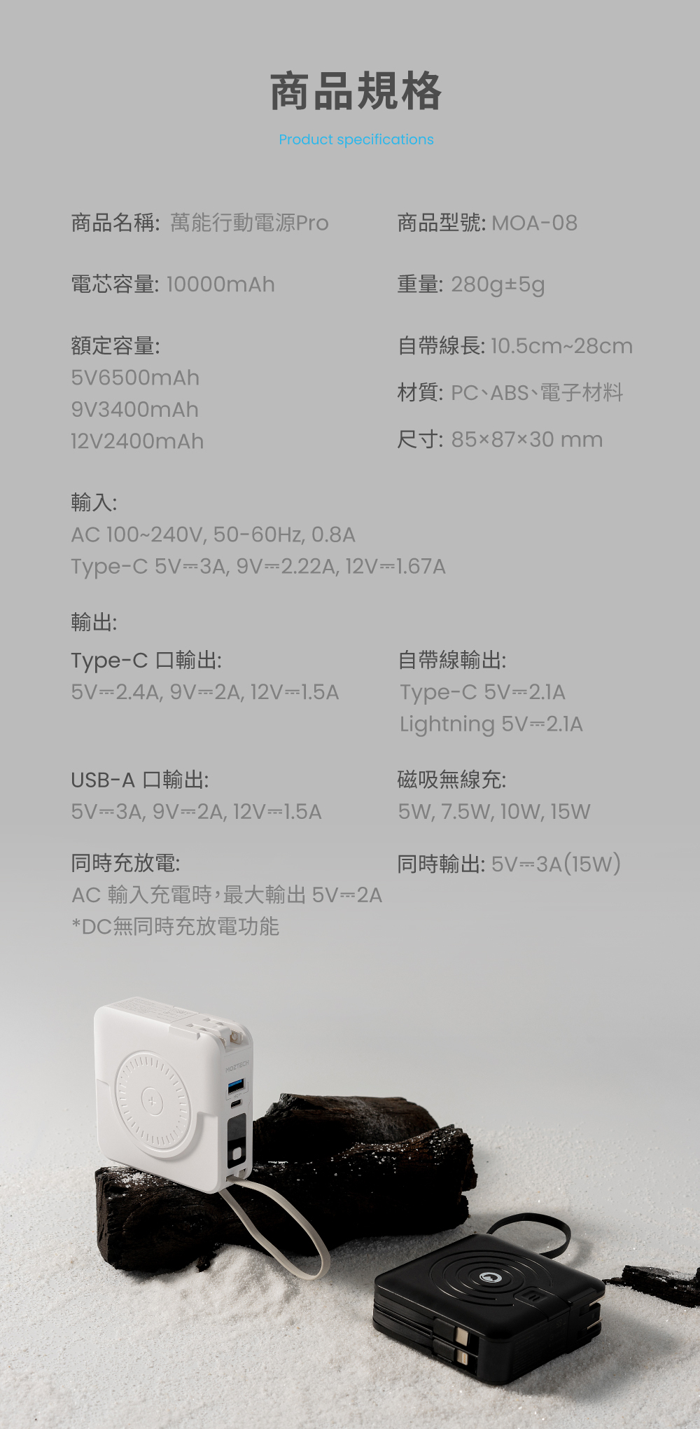 • 自帶充電線 iPhone&TYPE-C 出門一顆搞定!