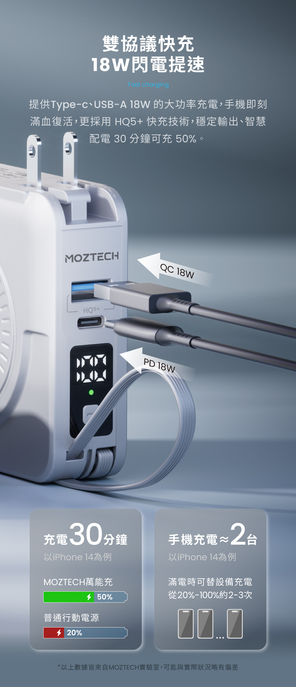 • 20W超閃充 30分鐘 瞬間回血 充滿50%