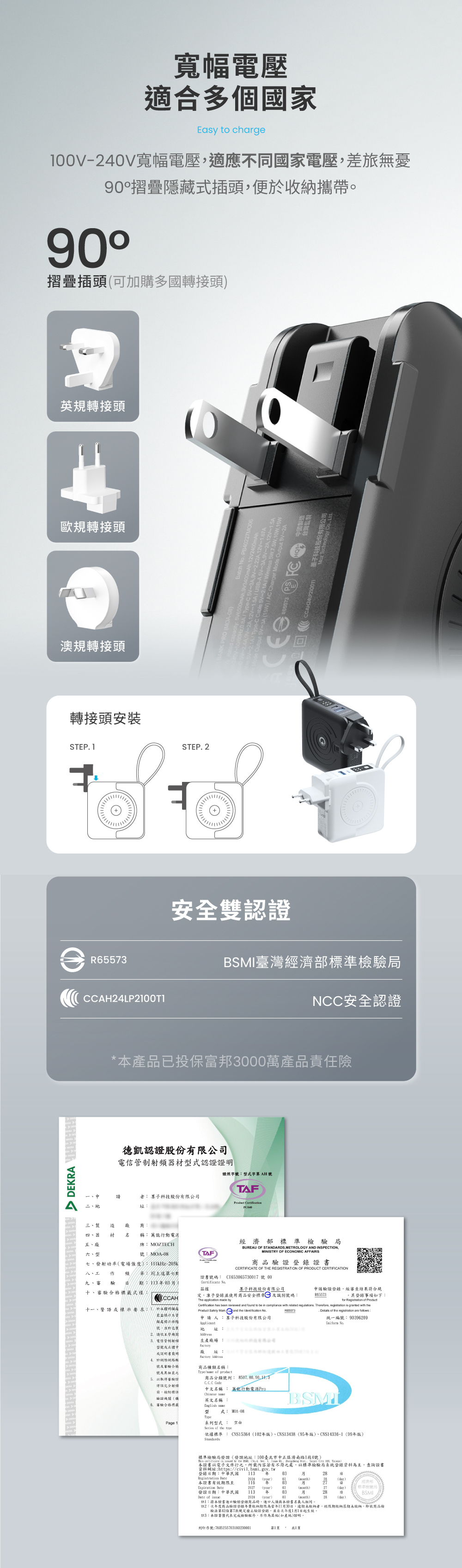 • 全球電壓 100-240V 可另購轉換接頭,出國一次搞定