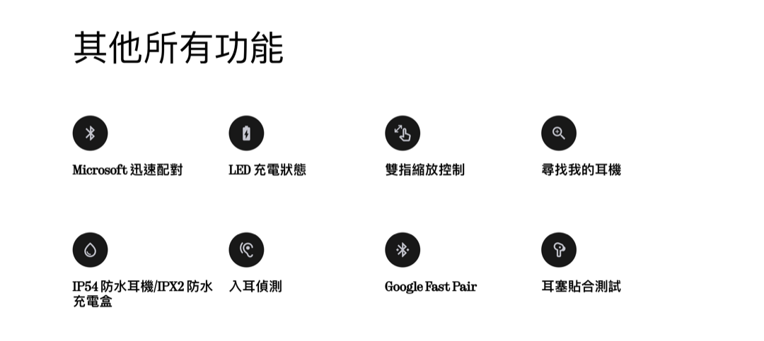 ● 防水等級:IP54(耳機) / IPX2(充電盒)