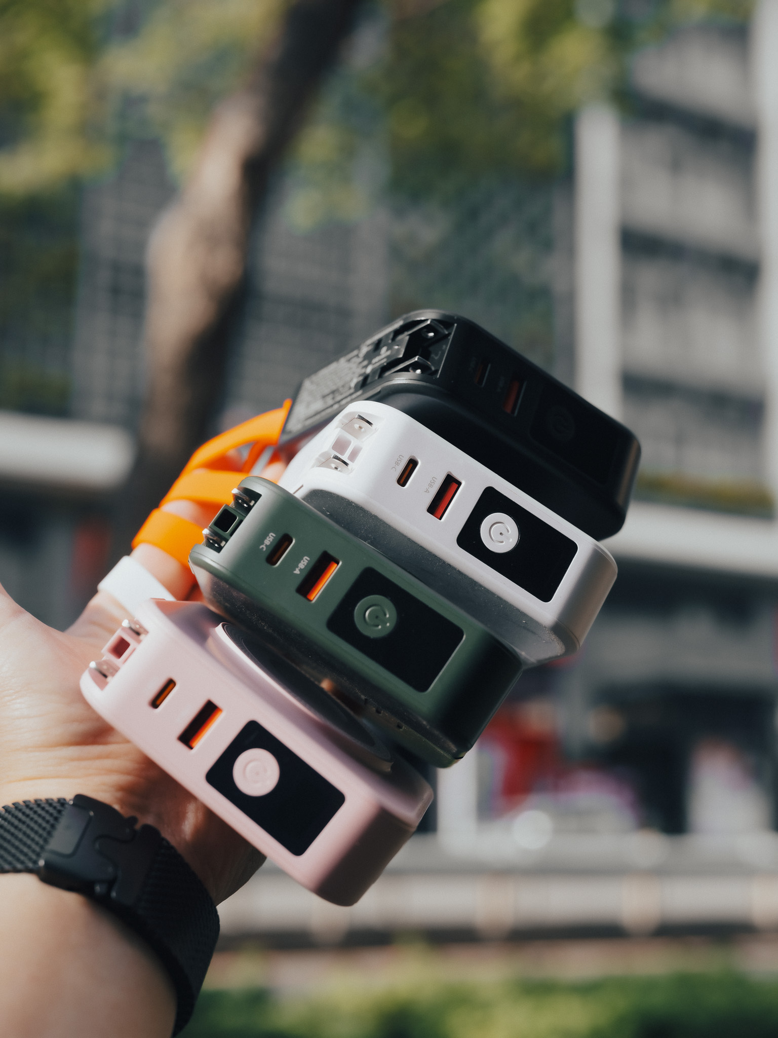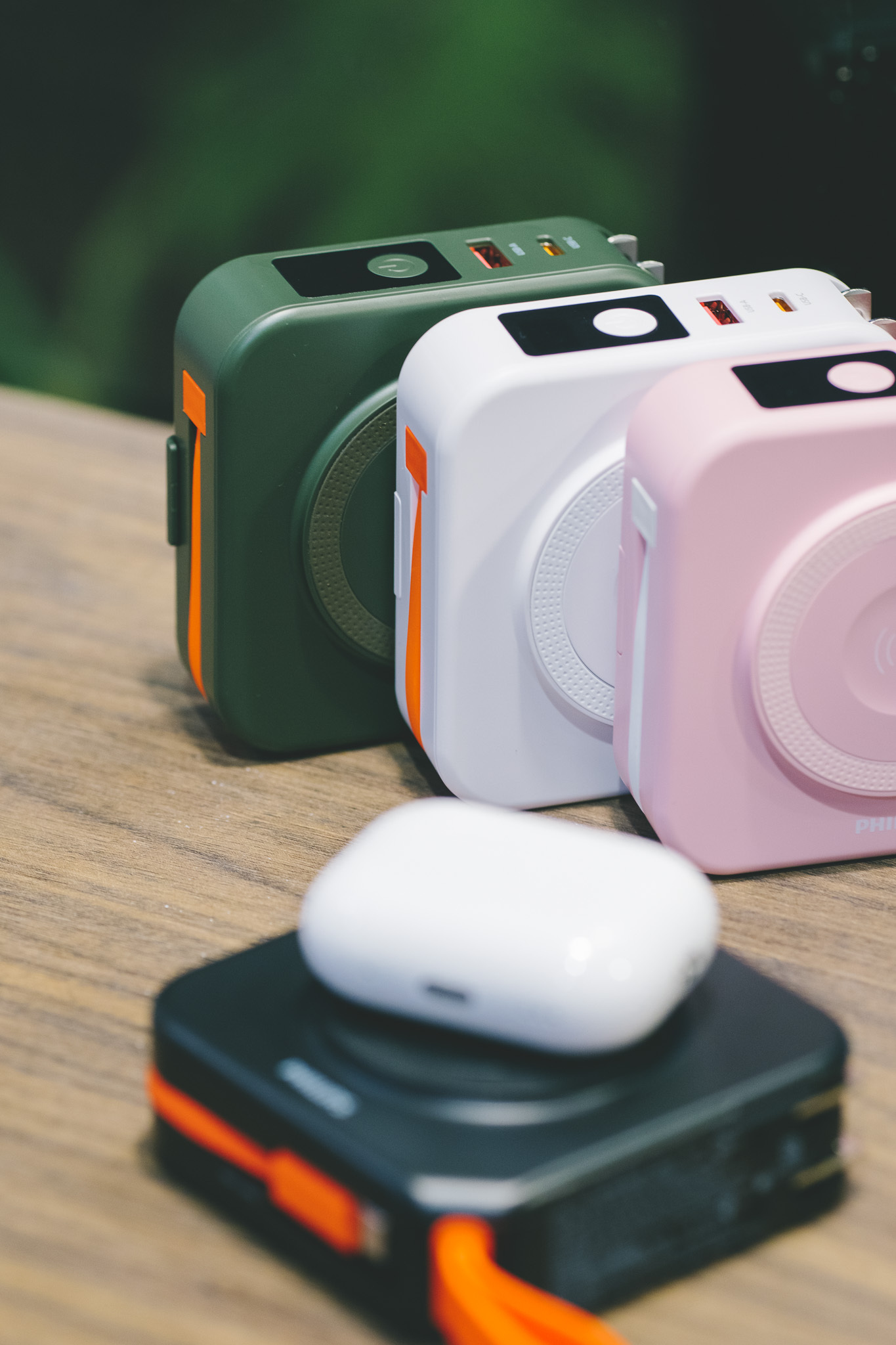 ● 自帶AC插座、便利提把、橫置手機支架、USB-C to Lightninig創意轉接頭
