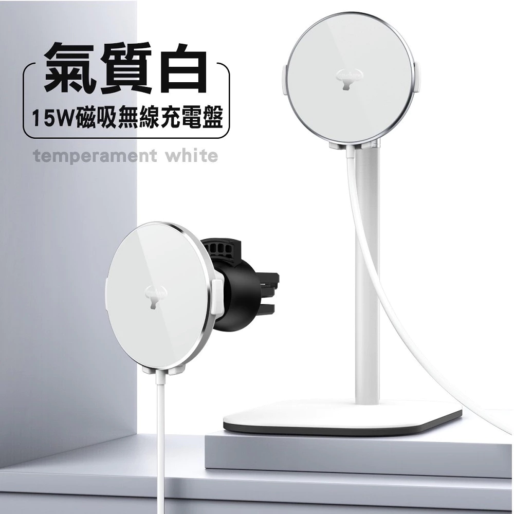 ‧15W擺變無線磁吸充電盤(兼容車架/立架/單盤)居家外出有無立架皆通用,隨你擺放