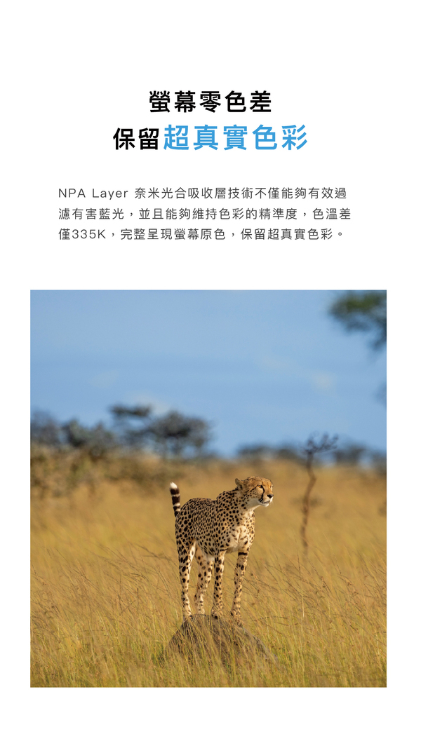 🔳 顏色精準不色偏,色溫差小於350K,最接近原色的抗藍光保護貼
