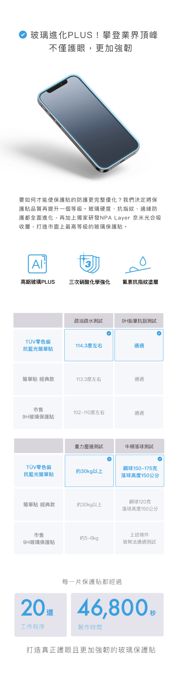 🔳 使用高鋁玻璃PLUS版,玻璃經過三次硝酸化學強化