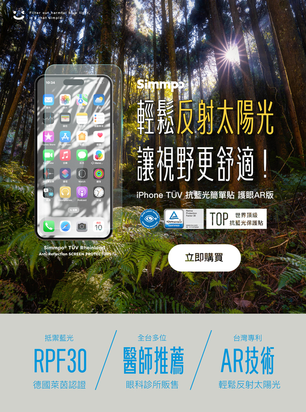 ◉ AR螢幕保護貼有加入「葉黃素酯」的成分,有效吸收有害藍光。