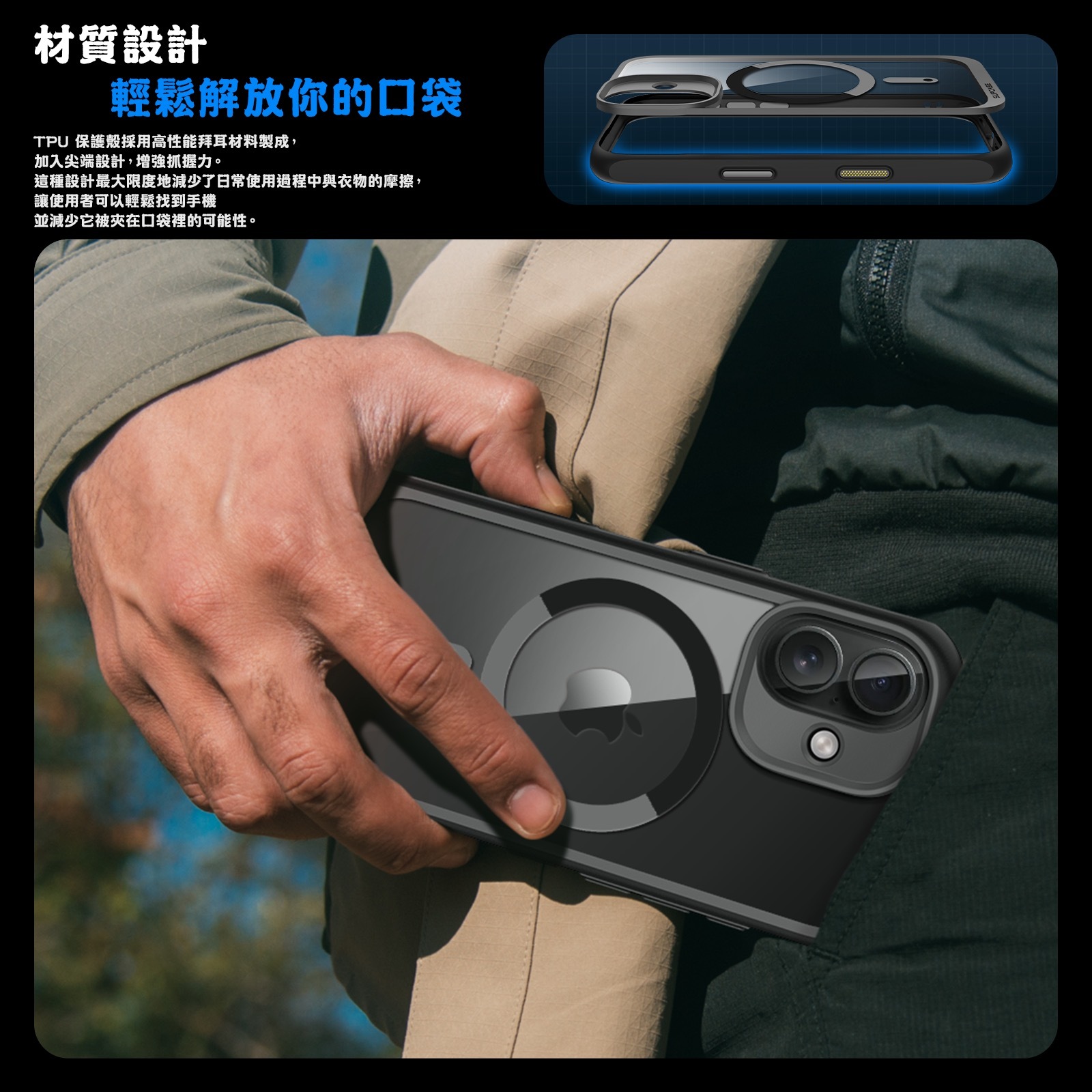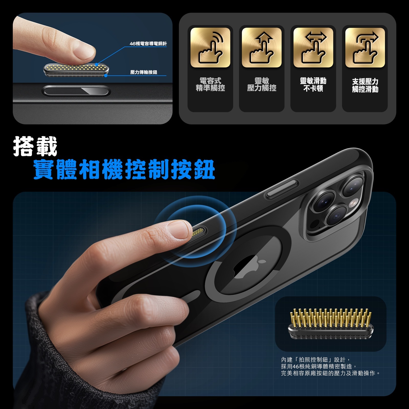 |透明顏色系列+軍規殼+MagSafe 磁吸+實體按鍵