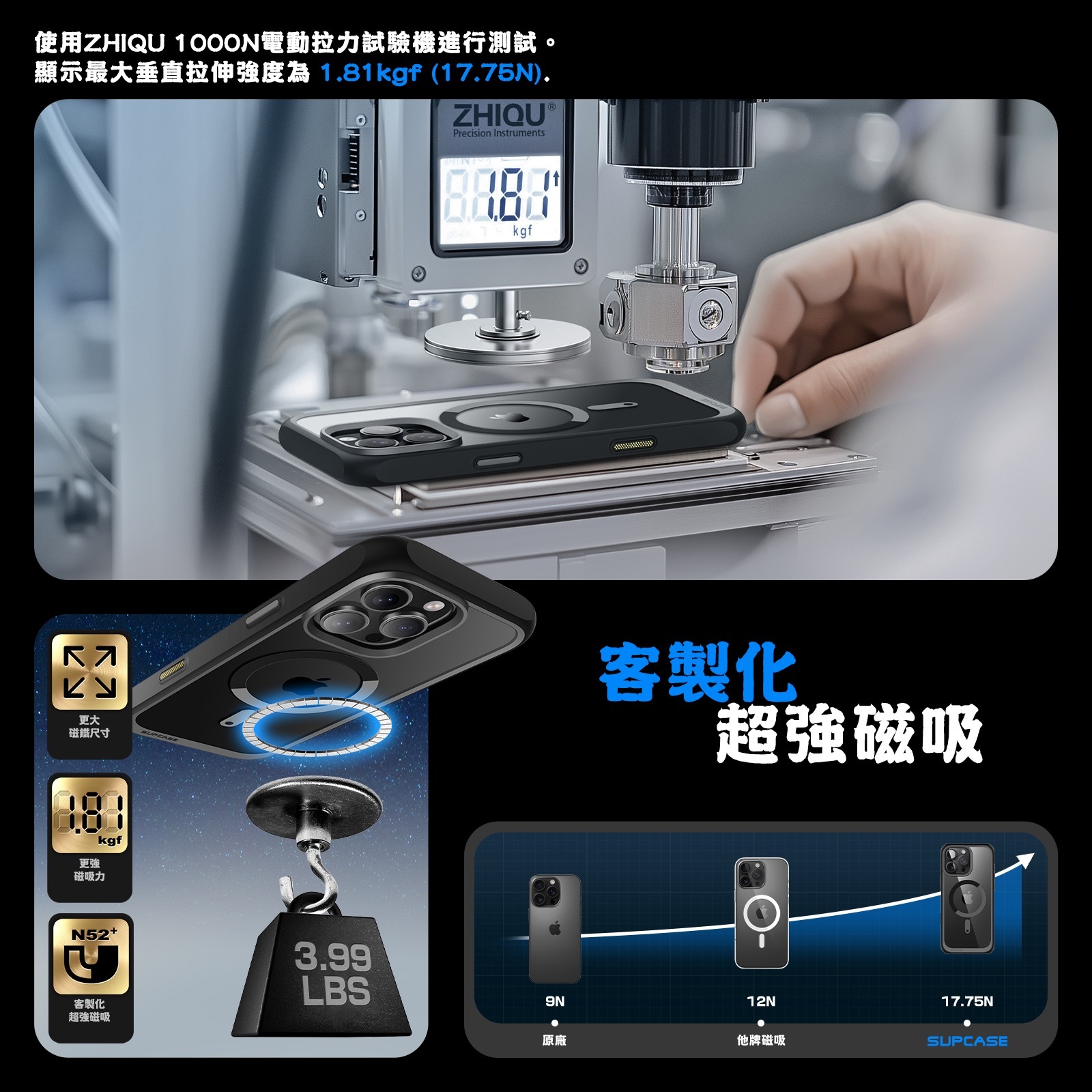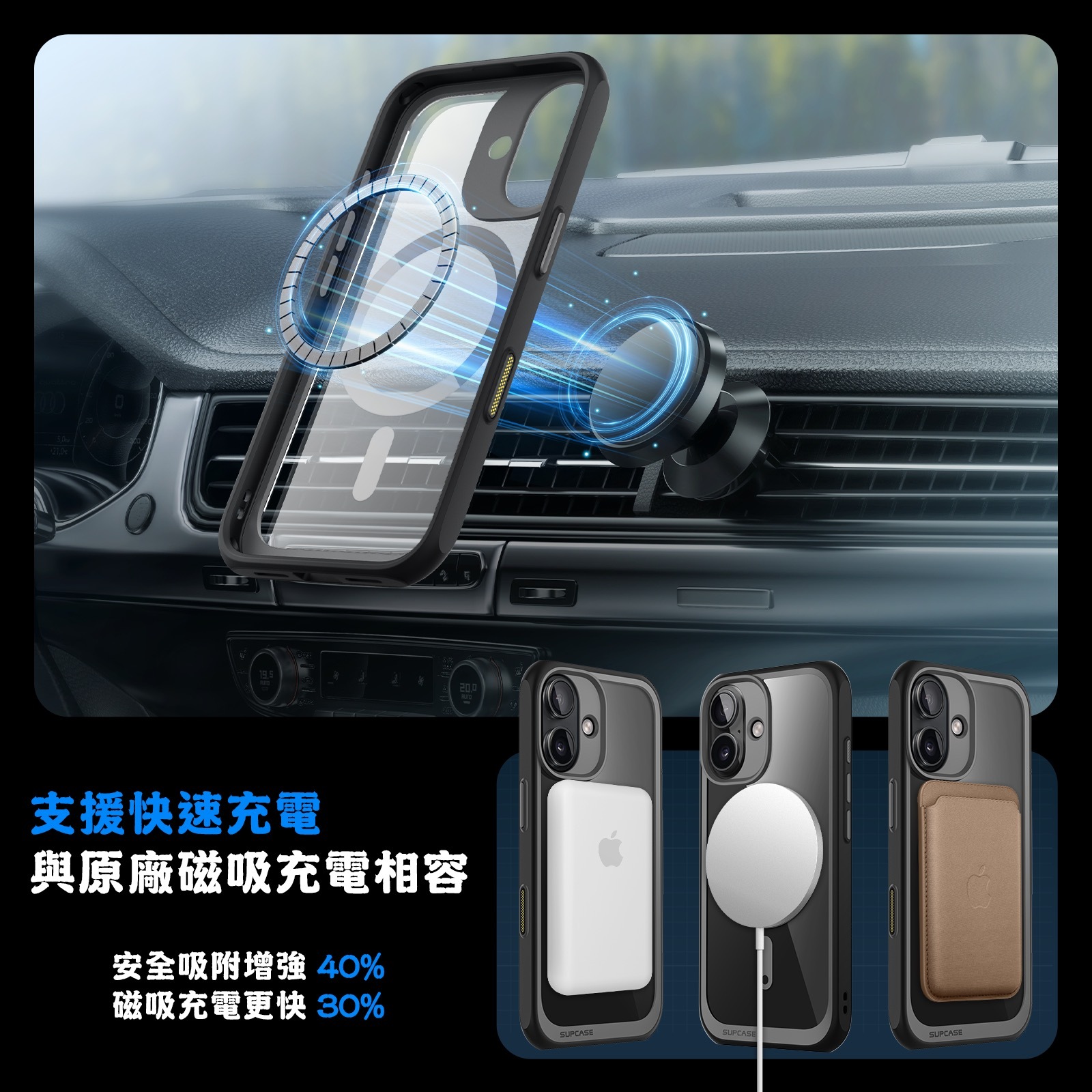 |背板 N52 強力磁鐵,支援 MagSafe 磁吸,確保配件緊密吸付磁性支架,並支援無線充電