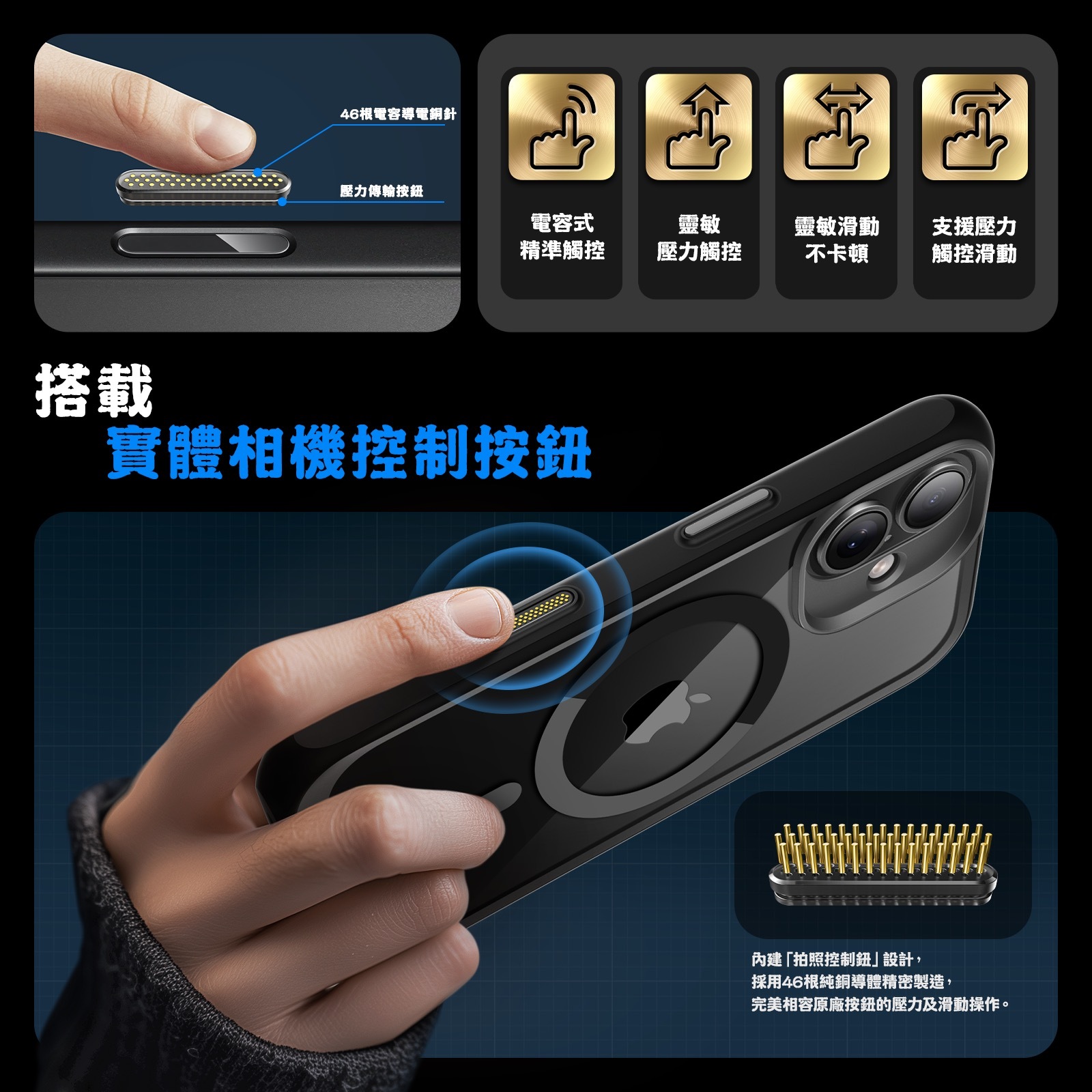 |透明顏色系列+軍規殼+立架+MagSafe 磁吸+實體按鍵