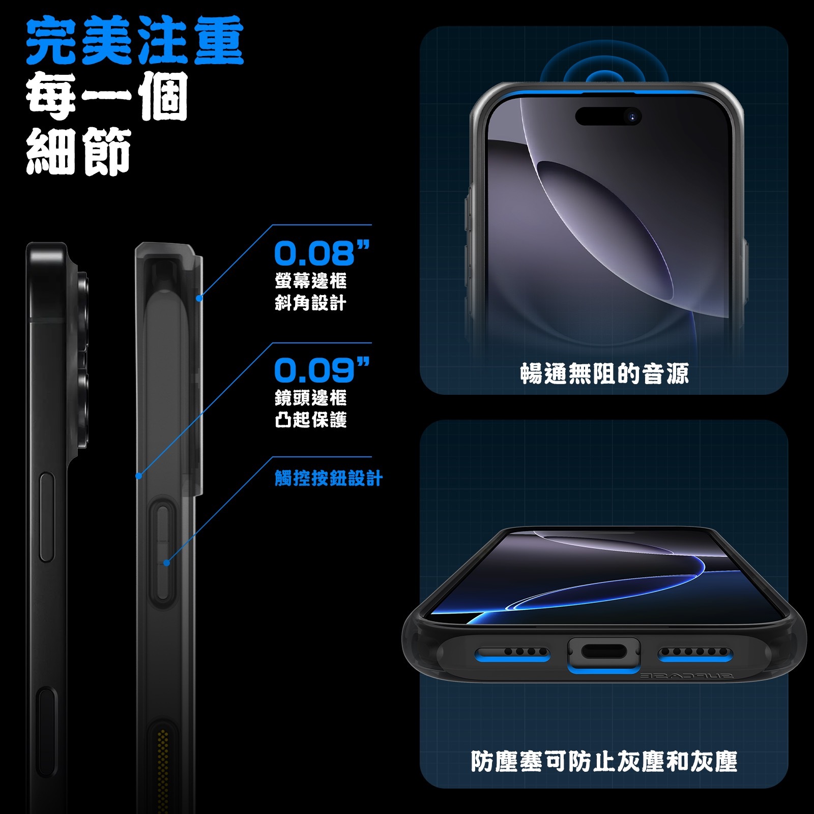 |防摔殼邊緣高出鏡頭及螢幕,提供螢幕及鏡頭額外防護,防止直接意外損傷