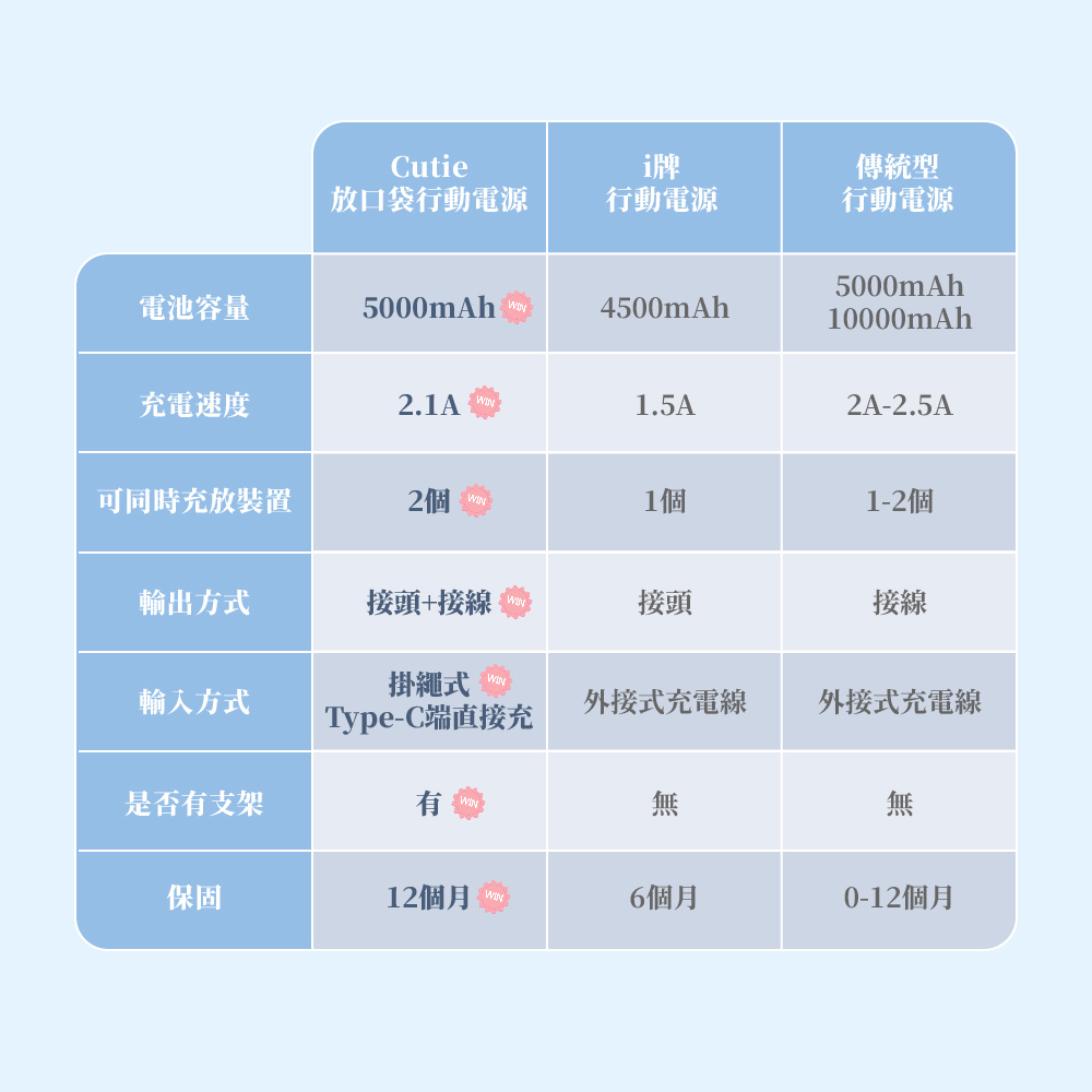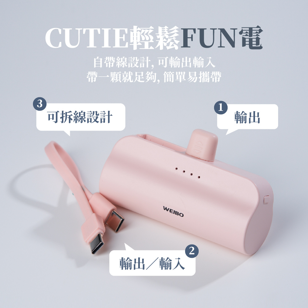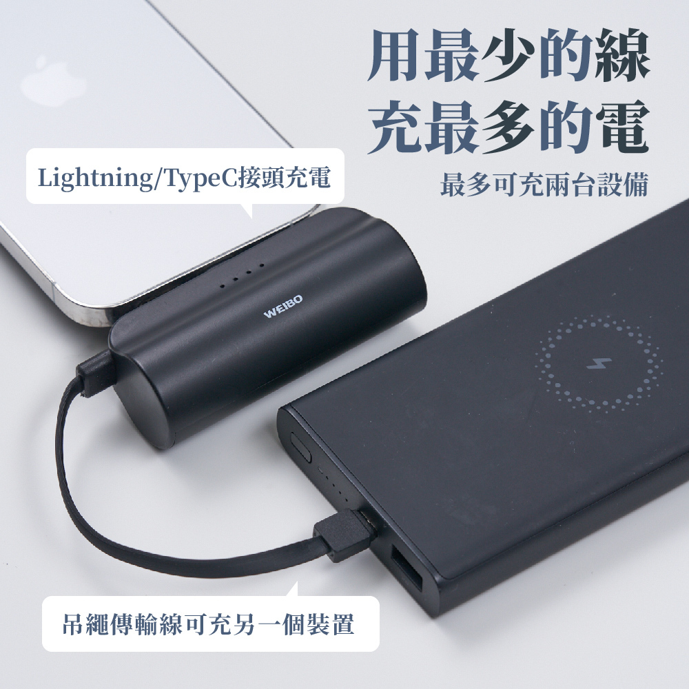 • 自帶可拆卸式Type-C線,也支援雙向輸出及輸入