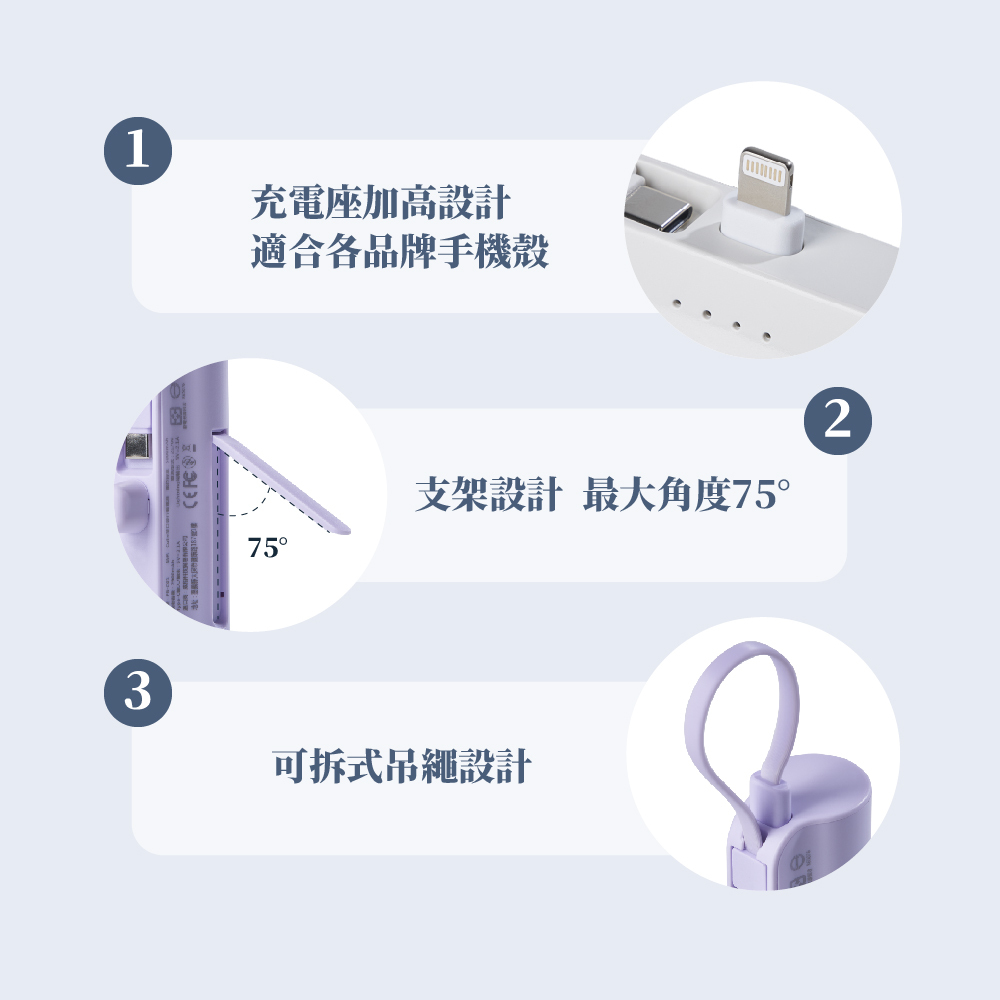 • 隱藏支架,隨時隨地,解放雙手,既能充電也能一邊使用裝置