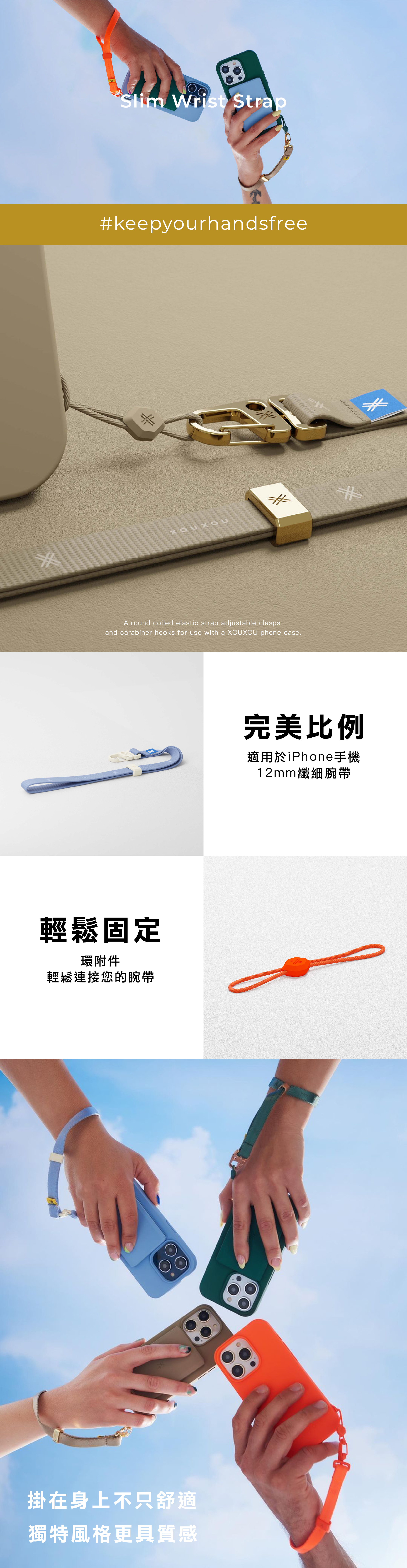 適用於 iPhone 手纖細腕帶,光滑的12mm寬扁平肩帶附有登山扣,可輕鬆固定您的手機、AirPods 或鑰匙並保持免提狀態